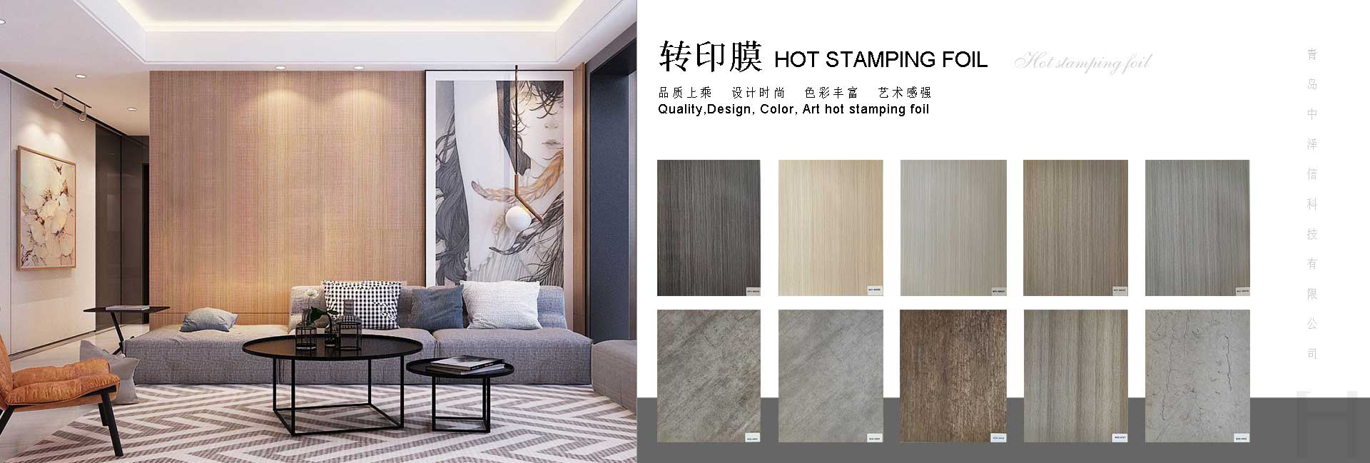 青島中澤信科技有限公司地處中國山東省青島市,致力于多種裝飾膜的研發(fā)和生產(chǎn),所生產(chǎn)的熱轉(zhuǎn)印膜和包覆膜廣泛應(yīng)用于多種家裝材料如建材、家具、裝飾框等。本公司擁有60多名專業(yè)工人,10000平米標(biāo)準(zhǔn)廠房,20年印刷行業(yè)經(jīng)驗,15年熱轉(zhuǎn)印行業(yè)經(jīng)驗,配備8套8色印刷生產(chǎn)線,采用韓國技術(shù)以及環(huán)保級原材料具備,ISO認(rèn)證。工廠距離青島國際機(jī)場和青島港不足一小時車距這些都是我公司能為全球客戶提供高質(zhì)量產(chǎn)品以及維持良好合作的重要因素。